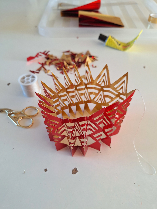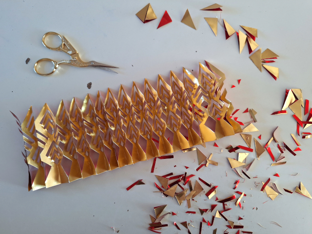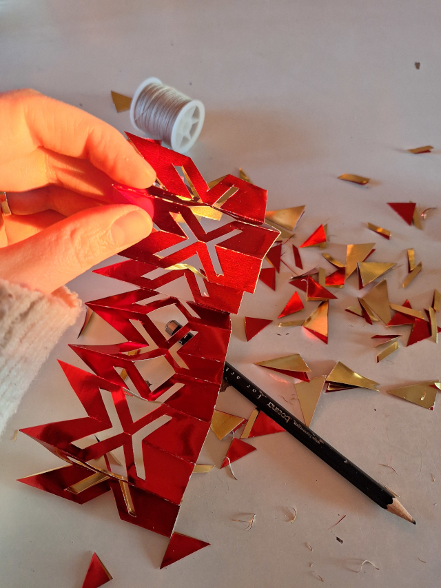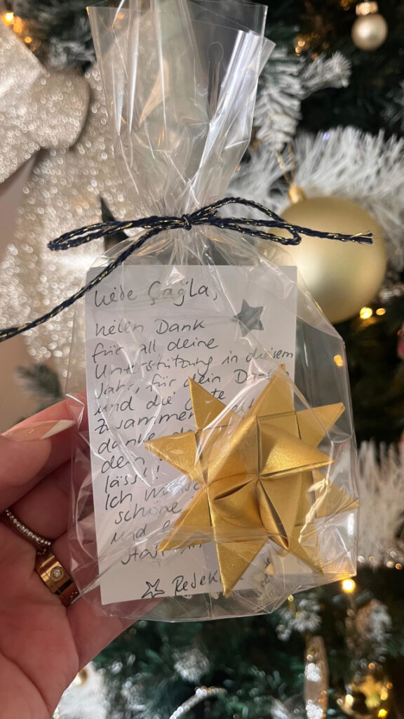 Sterne wurden gebastelt: Zuerst ganz viele Fröbelsterne für meine Kolleginnen und Kollegen in der Schule; dann habe ich gelernt, fünfzackige Origami-Sterne zu falten, und zum Schluss wurden noch zahlreiche Sterne aus Goldfolie geschnitten (und ebenfalls verschenkt).