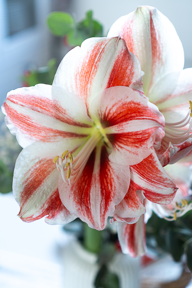 In der Vase stand jederzeit eine wunderschön blühende Amaryllis.