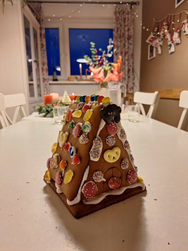 Wir haben ein Lebkuchenhaus verziert.