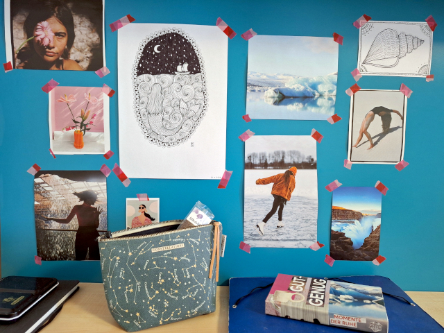 Die Zeit in einer Kurklinik vergeht sehr viel langsamer als anderswo, jedenfalls habe ich es so empfunden. Während ich im Alltag beinahe permanent das Gefühl habe, der Uhr hinterherzurennen – der Tag hat nicht genug Stunden! – hatte ich auf Usedom plötzlich ganz viel Zeit. Mein Therapieplan war nicht sehr vollgepackt, es gab sogar einzelne Tage ohne feste Termine, sodass ich immer wieder „Leerlauf“ und unverplante Zeit ganz für mich hatte. Gott sei Dank (!) ging mein Sohn nach einigen Tagen sogar gern zur Betreuung und meisterte die Trennung von mir ganz hervorragend, sodass ich ihn auch am Nachmittag nochmal in die Betreuung bringen konnte. Ich nutzte die freien Stunden, um an den Strand zu gehen, zu lesen, zu schreiben, zu malen oder Collagen zu basteln – mein allerliebstes Hobby während der Kur!