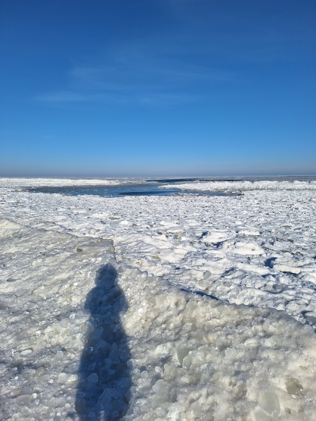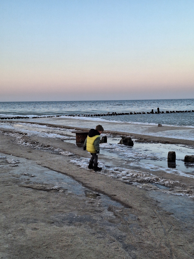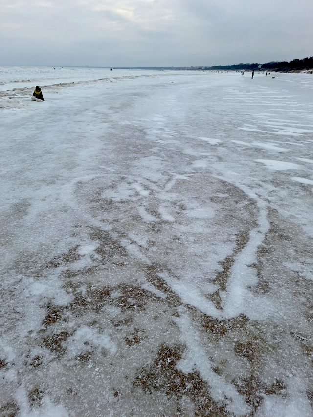 Zunächst fand ich dieses seltene Naturschauspiel faszinierend, und es sah ja auch wunderschön aus, gar nicht mehr wie die Ostsee, stattdessen fühlten wir uns bei den niedrigen Temperaturen fast wie am Nordpol. Nach einiger Zeit verflog die Begeisterung. Ich vermisste das Meer, die Wellen, das sanfte Rauschen, das entspannte Gehen im Sand. Das, worauf ich mich so gefreut hatte, war ganz anders als erhofft. Schön und besonders, aber eben auch nicht ganz „echt“, wenn du verstehst, was ich meine.