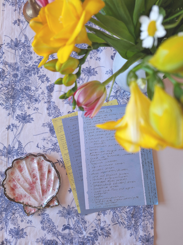 Ich liebe Listen – sie machen die rasenden Gedanken in meinem Kopf sichtbar (und übersichtlich), und wenn ich dann noch Dinge von einer Liste streichen kann, fühle ich mich effizient, zufrieden und fast so, als hätte ich mein Leben im Griff!